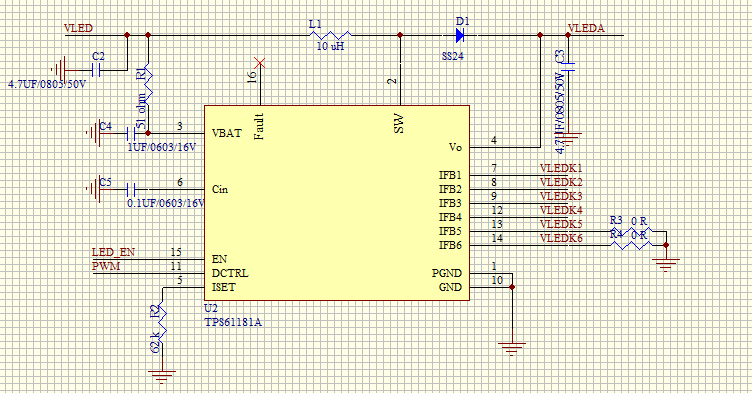 最近一直用TPS61181这个IC驱动4路10灯的背光(40个灯),但电路都是按照片IC资料上面设计的,但输出的电压一直都是3.2V,请各位帮忙看下。
