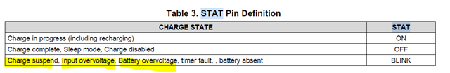2. How to distinguish with Charge suspend / Battery overvoltage/ Input overvoltage when STAT output BLINK?