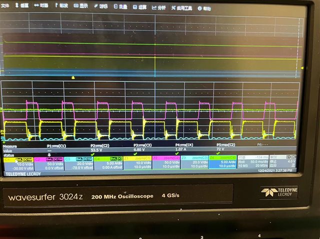 这个脚的波形也不对称,一个脉宽5.36us 一个5.2us,长时间这样很容易损坏