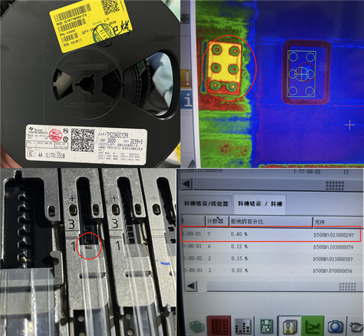 客户在贴片过程中发现这颗IC有粘料带抛料现象,贴片机用吸嘴吸不起来。投入1750pcs,抛料7pcs,抛料率0.4%。具体不良现象如图,怀疑静电原因但是增加湿布除静电,不良现象未改善。