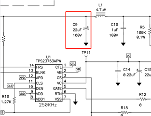 将电容增大到47uF应该没有问题,你可以从波形上看一下? 能够将22uF和47uF时C9这里的波形传上来看一下? 我需要确认是否22V时输入电压是否能稳定?