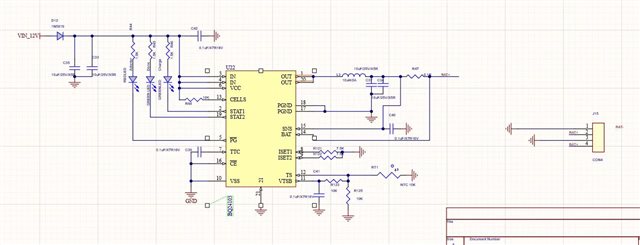 目前给2节4.2V 18650电池充电,问题1,部分充电特别慢,充一会就停了,电池维持在1.5V左右;电路图如下:麻烦帮忙检查下是我的电路问题还是别的?