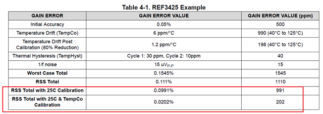1.For emperature Drift (TempCo), GAIN ERROR VALUE(-40℃ to 125℃) =990, why is the max gain error value not from 25℃ to 125℃?