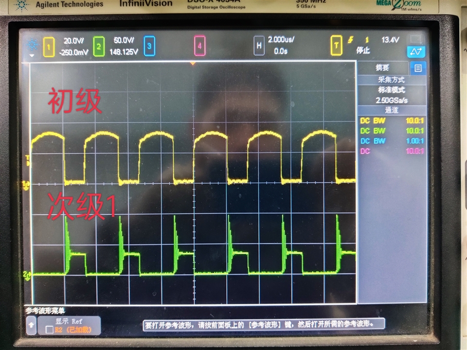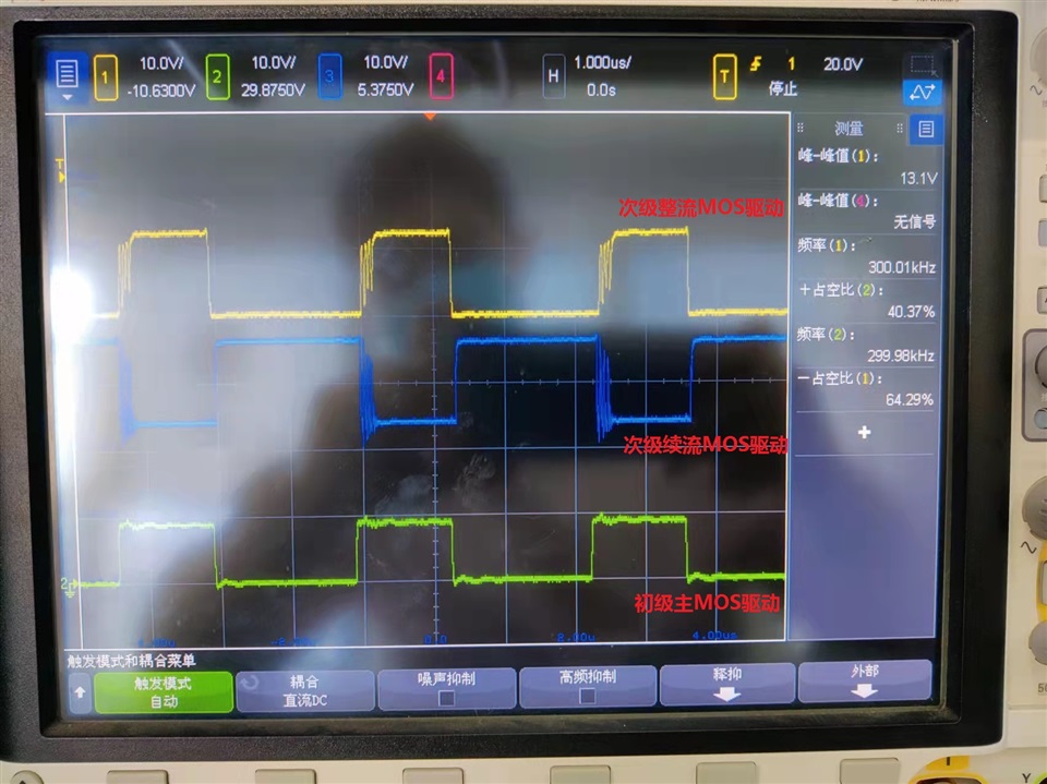 因加同步整流异常,将MOS管G极均接地,验证同步整流驱动时序是否正常:
