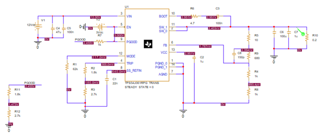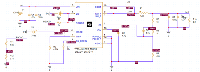 搭建TPS54J061的仿真电路后,可以正常仿真无报错,但是输出电压为0