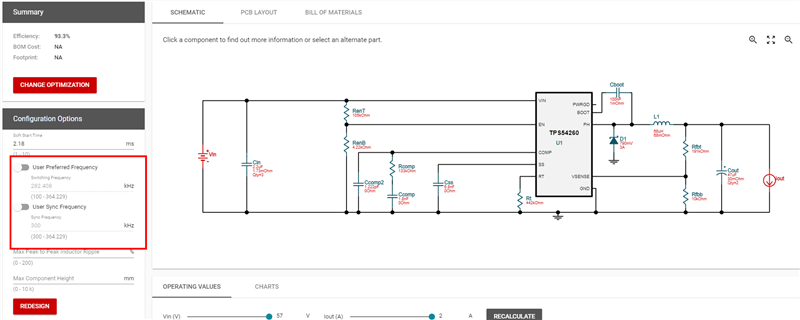 TPS54260可以借助这个芯片官网的webench在线仿真来获得电路,只要输入“输入电压、输出电压,满载电流” 即可获得推荐电路。
