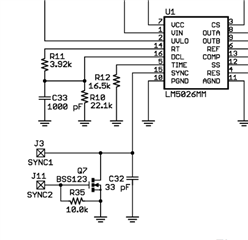 根据LM5026数据手册的参考电路图搭建了验证外部时钟同步功能的电路(电路结构相同,参数不同)。