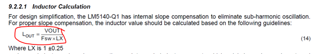 1、按规格书中的公式计算,参数设置Vout=5V,Fsw=2.2MHz,LX=1,计算后Lout=2.27uH,