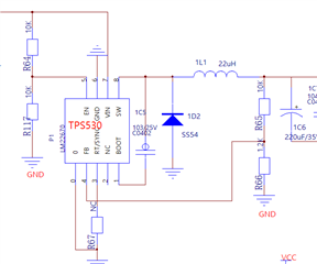 这次使用TPS5430是替换LM22670MRE-ADJ的设计上进行的,贴完片发现24V工作不了,而12V可以正常工作,电路如下图所示