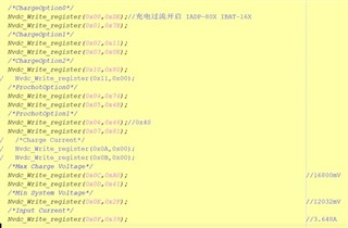Nvdc_Write_register(0x00,0xDE);//充电过流开启 IADP—80X IBAT-16X