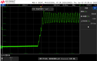 测试波形如下图所示, 电源输出反复震荡, 输出爬升过程有明显台阶.