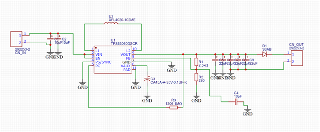 我依照Datasheet绘制了一块PCB 使用了TPS63060。