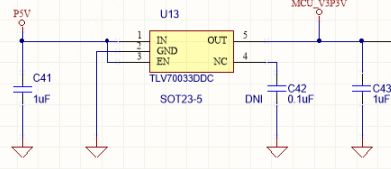 在板子上输出电压3.6V(输入为12V转5V线性电源),上电后芯片不发热,电路图如下