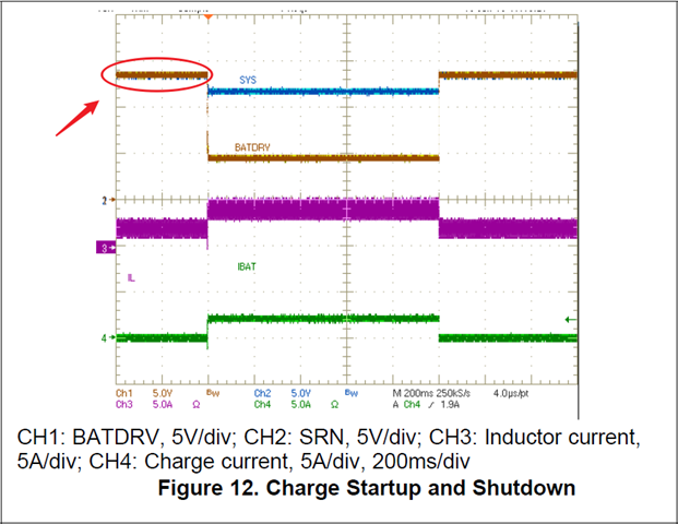 在未插入Adapter的情况下,我们测量到的BATDRV引脚电平为低电平,但是在Datasheet Figure 12 Charge Startup and Shutdown 波形图上看到初始BATDRV的电平为高,想确认Figure 12 的波形图是在什么条件下测到的,或者说未插入Adapter的情况下BATDRV的电平情况如何?如何控制BATDRV 电平的高低?