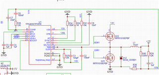 我刚才查了一下功率电感的容量,他应该是满足的,这个设计来自于一个论坛的开源项目,作者说自己测试通过可以带至少7a的负载,但是我这边重新设计了pcb走线,然后就无法达到人家的设计指标了。甚至焊接好后他都无法正常启动,一直是脉冲一样的输出,用万用表测试只有2.5v,后来拆除c6后可以启动带载,但是只能先空载再接负载,直接带载是不能启动的(软起动失效?),后看论坛说可以换大一点的电容,提高带载能力,于是换了一个100nf,发现问题明显改善。我怀疑是不是我的mos管换的参数不对,造成这种问题,但我也不确定。
