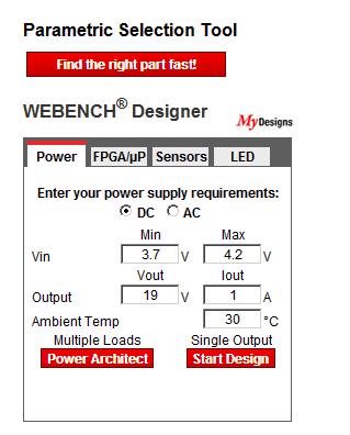 想把电池电压(3.7-4.2V)升到19V且,要求电流1A左右,能不能给推荐一个芯片?
