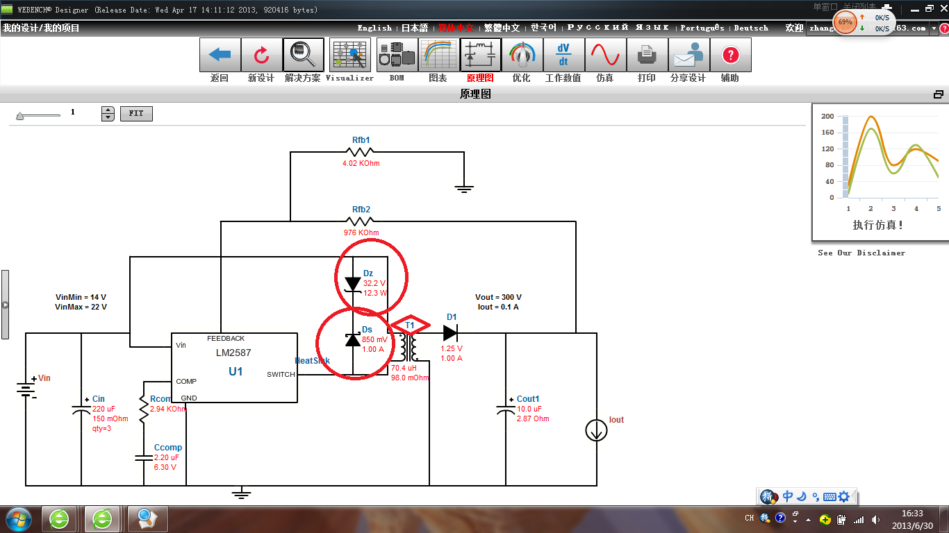 如题,我正在设计一个输入电压8V~22V升压到300V 0.1A的电路,使用贵司的电源设计软件,遇到三个问题希望请教。