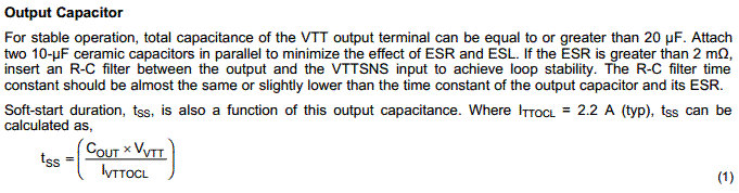 如果正常,如上所谈,VTT的输出电容需要时>20uF的低ESR的陶瓷电容稳压。