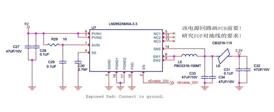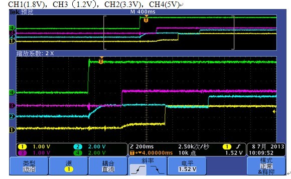 本人设计的一块OMAP-L138控制板,控制板是外面5V供电,板内的电源系统有3.3V,1.2V,1.8V,使用的电源芯片是LM2852系列,关于LM2852XMXAX-1.8和LM2852XMXAX-3.3在测试上电时序中,3个电源的使能信号时序都是对的,但是发现LM2852芯片输出电压出现台阶波形,现把原理图和测试波形附上,特向专家请教一下,谢谢!