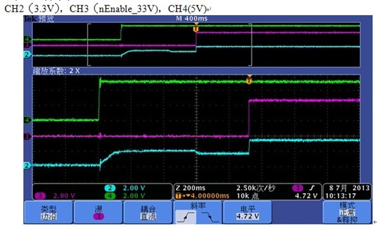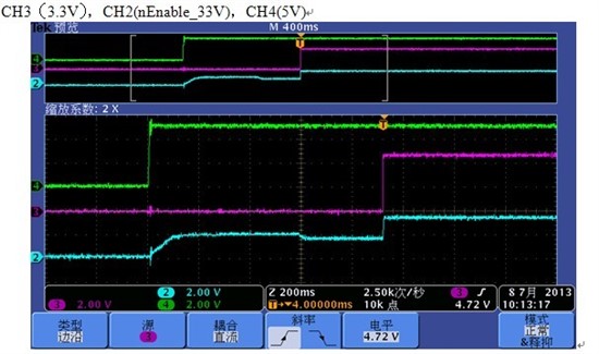 1. 输出的3.3V电压在使能信号未动作,而5V动作时,电压爬升到2V左右,然后在使能信号动作时,输出3.3V才正常。