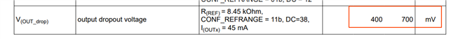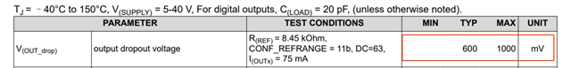 需要确保输入电压Supply与OUT脚的压差需要大于Vout_drop最大值,这个值确实和通道电流有关,电流越大,drop电压越大。