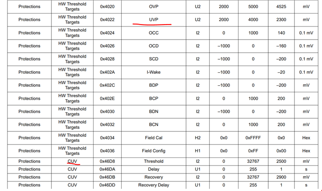 请问,在测试BQ27Z746时,软件保护都没有问题,但硬件保护( HCUV, HCOV, HOCC, HOCD 和 HSCD )不动作,一直都是软件保护动作,是怎么回事