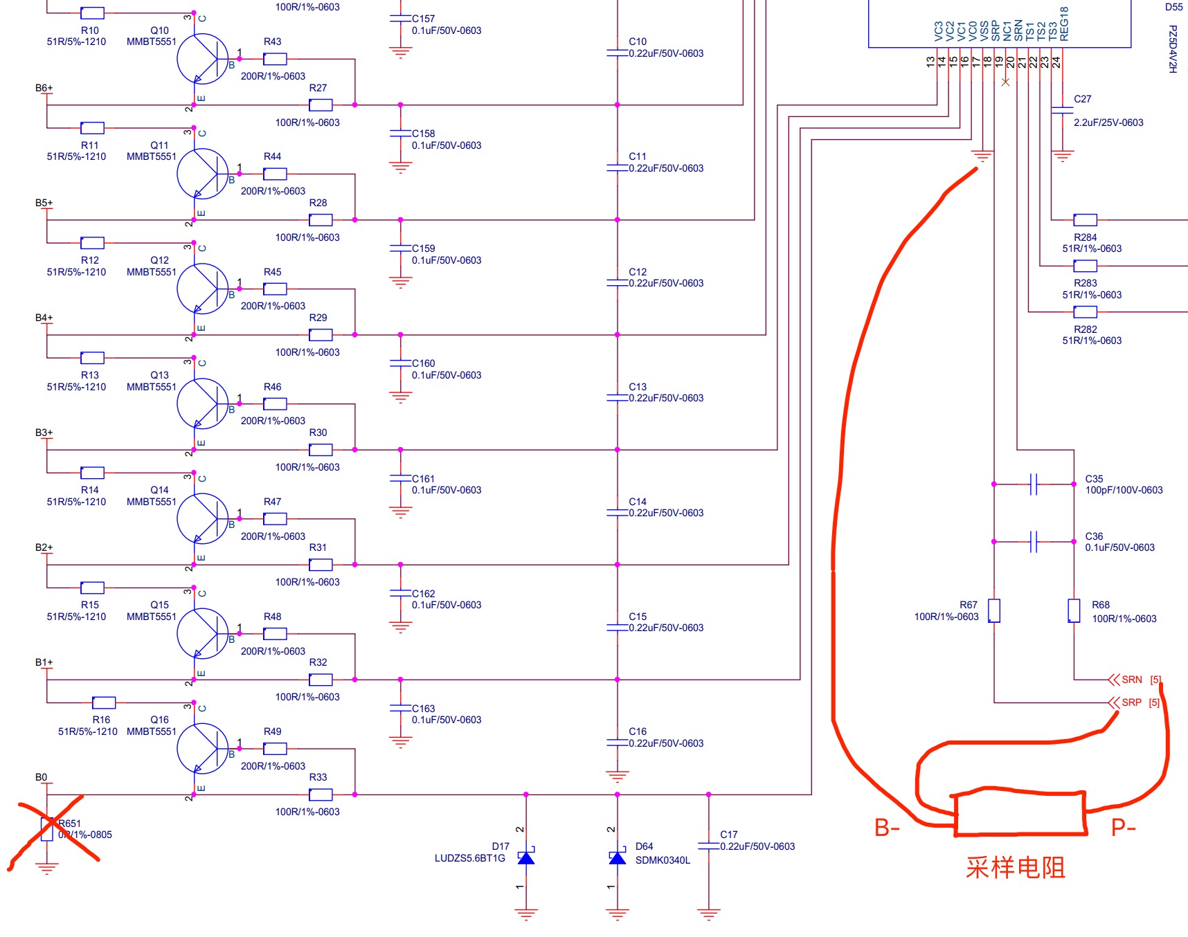 后来又怀疑是SRN和SRP引脚引入了干扰,在AFE引脚端将SRP和SRN引脚短路,问题依旧存在。
