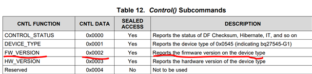 请问BQ27545固件版本号为0502的是什么版本的?具体型号是什么?