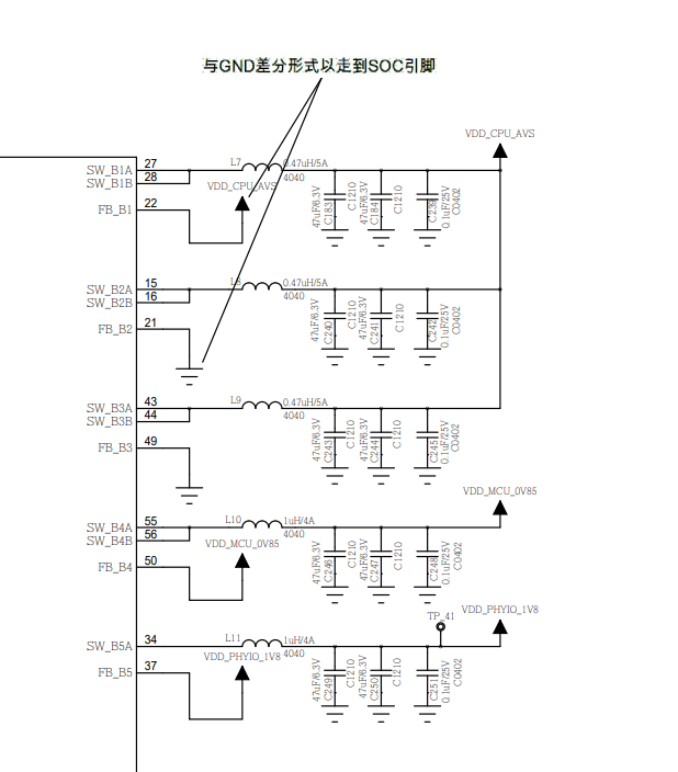 TPS65941212采用3+1+1配置,PMIC外围电路如下图所示: