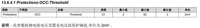 關於OCC 設定, battery mamagement studio 裡可設定的最小值是4, 單位 mV,