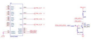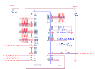 TPS23881用作4通道60w,但实际每通道负载功率不超过35W,电路图如下,第一张图为TPS23881配置电路,第二张为PSE输出外围电路,第三章为POE接口。