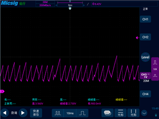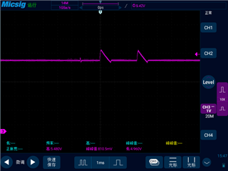 实测发现输入7-8V左右能工作,但用电设备工作时,输出电压会过冲,如下图: