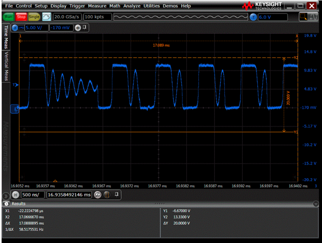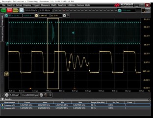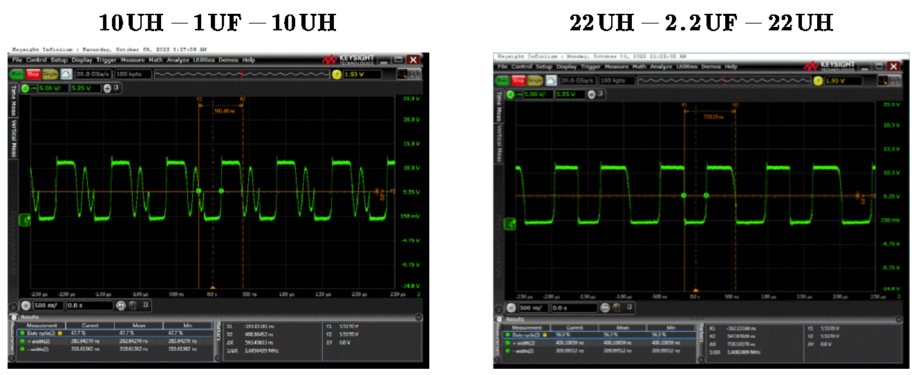 最近尝试将22UH改为10UH 电容改为1UF,禅寺L5和Ccuk之间电压见下图,这个图是否增长,存在低负载下电压跳跃