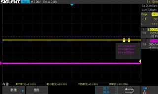 在低温-40℃下,输入12V/10A,输出12.3V,负载时序8A-0.3s,2A-3s,8A-0.3s, 2A-27s,输出异常如下图
