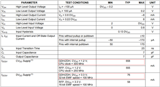 这款DSP的电气特性如图所示,红色部分是我所使用的型号有关的信息。