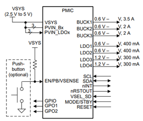 如下左图EN/PB/VSENSE引脚,5V供电的TPS6521901,在默认时这个引脚是什么功能?是Enable还是PB?