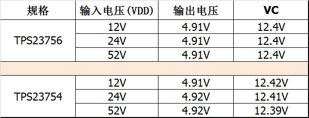 从规格书中得知,TPS23756和TPS23754是pin to pin,就UVLO不一样,这个UVLO的定义我们不是特别理解,TPS23754 UVLO规格书中给出的VC是最小14.3V,典型值15V,最大值15.7V,但通过我们测试,VC 12V是完全可以开启TPS23754,见下表,请问UVLO的定义的是VDD(48V)还是VC?