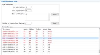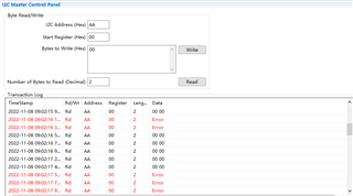 我在用新的BQ34Z100-G1与Battery Management Studio通信过程中。手动在Advanced Comm界面下操作:上电后在0xAA地址下读取0x00寄存器上的数据,有时候能读到,有时候设备没有ACK回复;