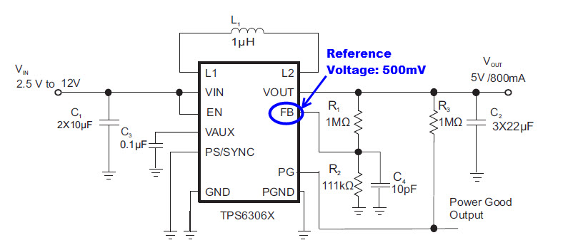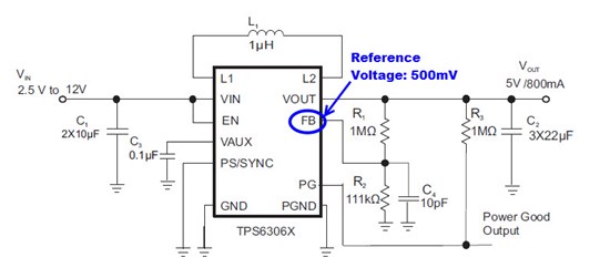 TPS63060 FeedBack参考电压是500mV, 如果在负载和地之间串联