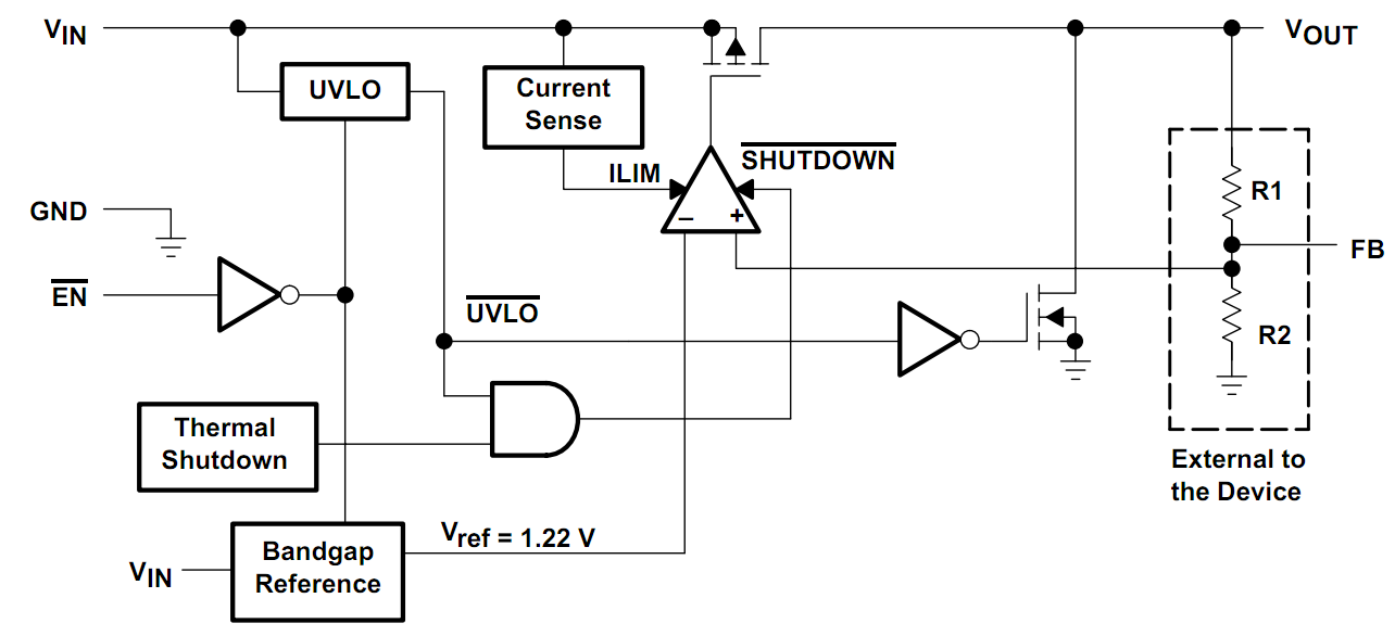 参看了TI公司的TPS75933,其内部结构如下: