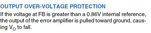 LMZ2系列的开关电源具有输出过压保护的功能(output over-voltage protection),但是手册上只是提到了当放生这种情况后,放大器的输出会被拉低,输出电压降低。