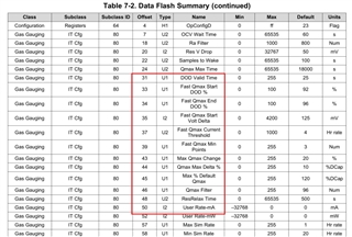 1、整理BQ27426手册,发现手册上7.3 Data Flash Summary和7.4 Data Memory Parameter Descriptions的描述有差异,请帮忙确认以哪个为准?