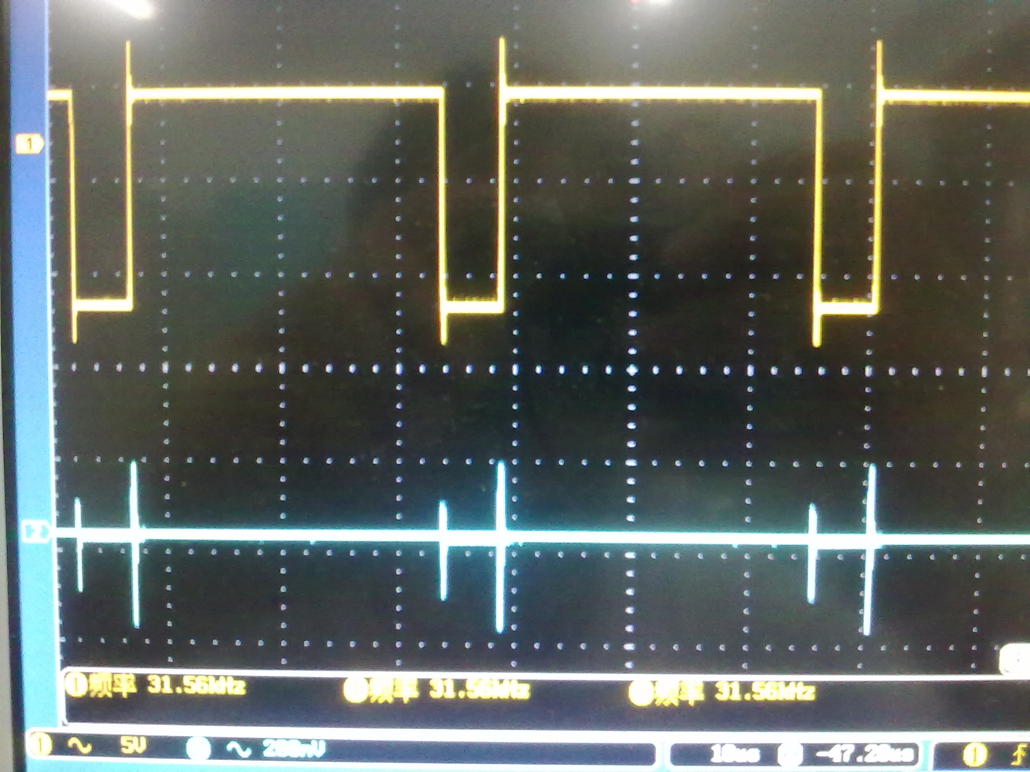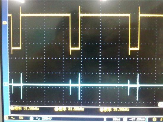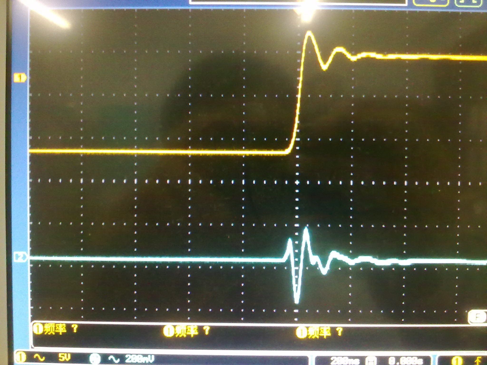 黄色的为测试电感与2PIN连接的波形 蓝色为输出波形 都是用交流档测试的 我的疑问是那个峰值抖动是由哪里引起的呢 是开关电源固有的 还是电路上可能出现的问题 而引起的呢??