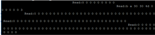 将上面的寄存器的值在MCU通过I2C写到了5个寄存器里,示波器看到写入时序正确,有应答,但是读出来的时候只有寄存器地址22的是正确的,其他四个都是0,如下: