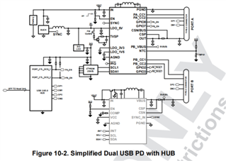 第二张图显示,可以支持PD快充的同时,也可以USB2.0通讯,数据线也接到了HUB上,但是如果D+ D-接到了HUB上,可以通数据,此时又没法支持BC1.2充电了,这是我的理解