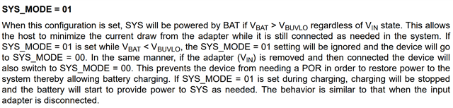 4.如果设置SYS_MODE = 01,电池充满电后;如果5V一直在,等电池电压掉下来后,后续是否还有recharge的阶段?