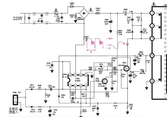 1 UC3843功能及技术特性 UC3843是一种高性能固定频率电流模式控制器,专为直流至直流变换器低压应用而设计, 设计人员只需采用少量外部元件就能获得性价比高的解决方案。 UC3843具有自动前馈补偿、锁存脉宽调制、欠压锁定、低压启动等特点, 电流模式工作可到500kHz.器件提供8脚双列直插塑料封装和14脚塑料表面贴装封装(SO- 14)。 UC3843由振荡器、误差放大器、电流检测比较器、脉宽调制锁存器、参考稳压器等几部分组成, 内部结构如图(参考3842的设计)所示,