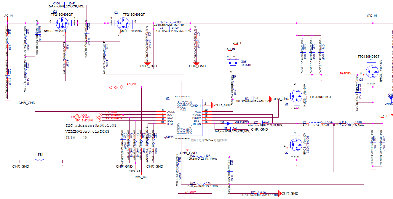电池和适配器一起上电,适配器不供电:ACEFT和RBEFT均没有导通,ACDET电压正常2.6v,Vregn实测5.93v,himos和lomos均未打开,电池电压15.8V,sys电压15.2V,batdrv电压15.2v(SRN15.8V)