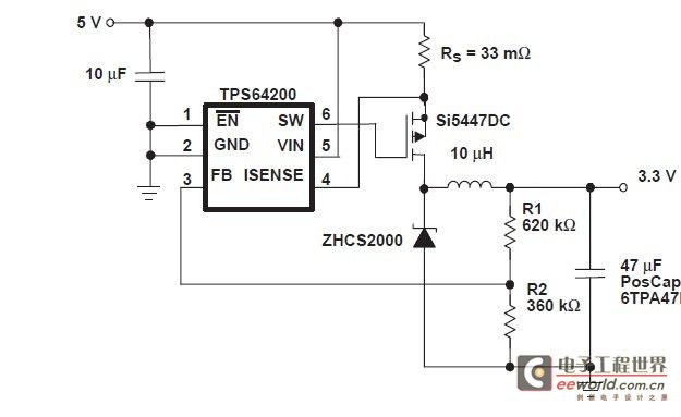 我用的TPS64200,电路参考的DATASHEET上的推荐电路,只是电感用的4.7uH,推荐值是10uH 现在问题是电压没问题是3.3v,但电流最高只能输出30mA 难道真的是电感的问题?