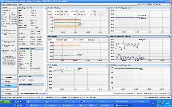 情况描述:ucd9222 +ucd74111 使用VID6 输出0.8-1.1v 反馈调节电压; +ucd74106输出1.0v稳定电压。配置完成,fusion GUI监测也输出正常。但是测量管脚PG1和PG2电压发现,只有0.75v的输出,没有置高到3.3v,这个可能是什么原因造成的?附 fusion 监测图